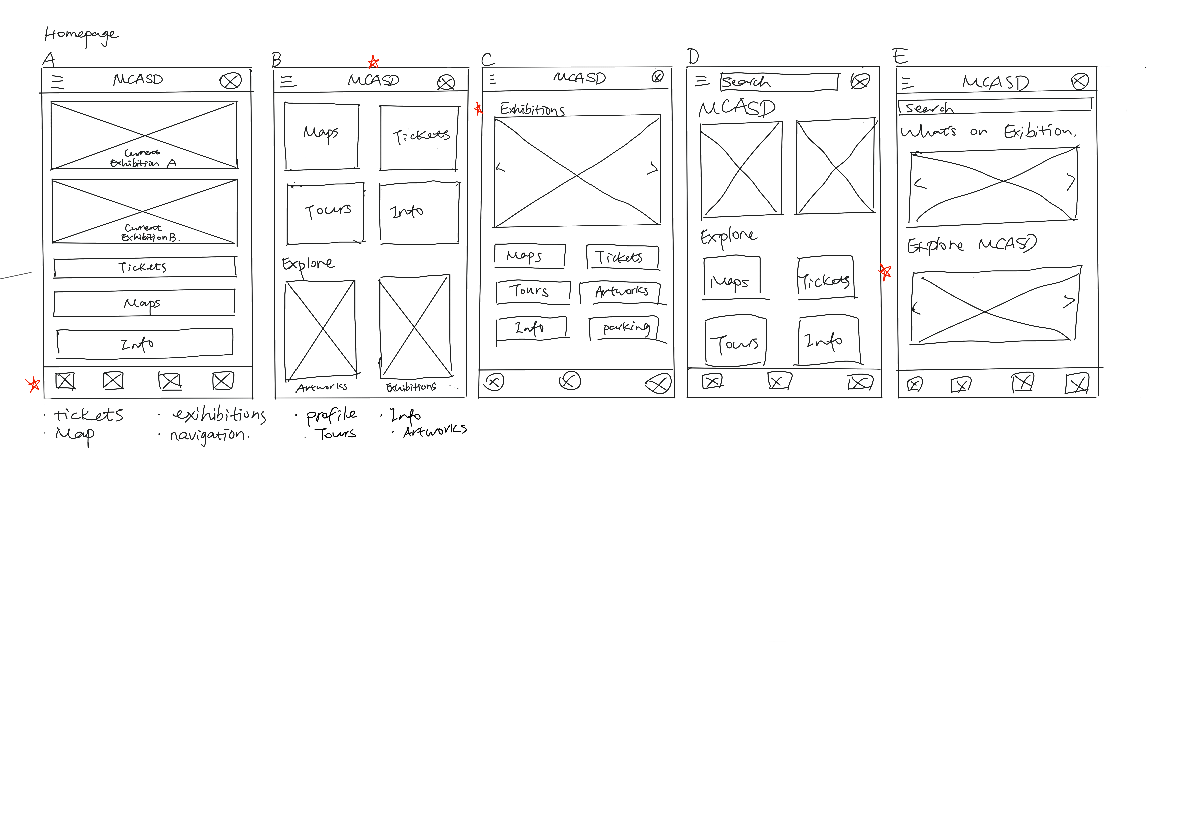 I decided to start with some sketches first, drawing out a couple of different versions of the same screens and picking out the ones I liked the most. Then I sketched my main screen designs.