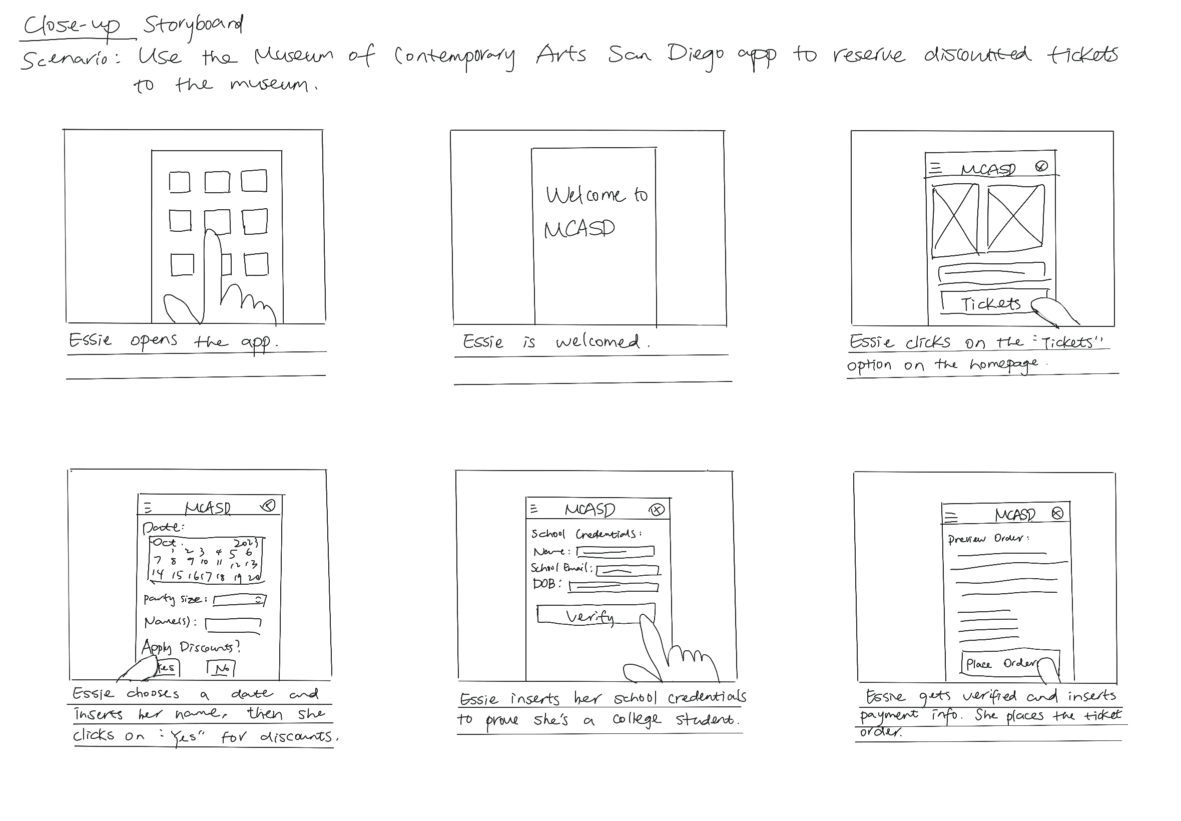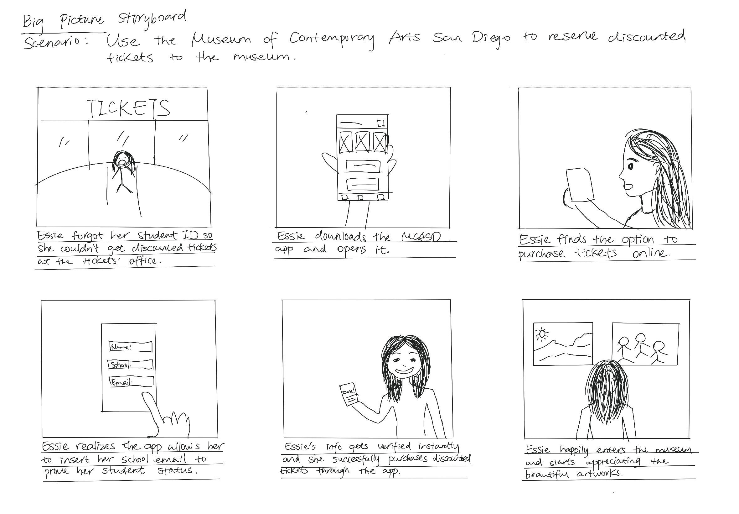Based on insights gathered from interviews, I started the ideation process by constructing two storyboards to encapsulate the user's journey. Given that a recurring challenge among interviewees was related to purchasing tickets, my primary focus revolves around developing features that streamline the verification of ID information, the application of discounts, and the overall ticket purchase flow.
