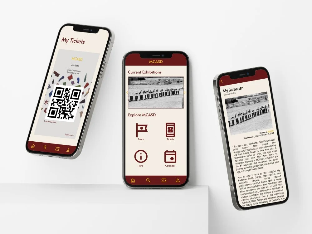 The MCASD Mobile App is designed for easy access to exhibition and artwork information and an intuitive discounted ticket purchasing process.